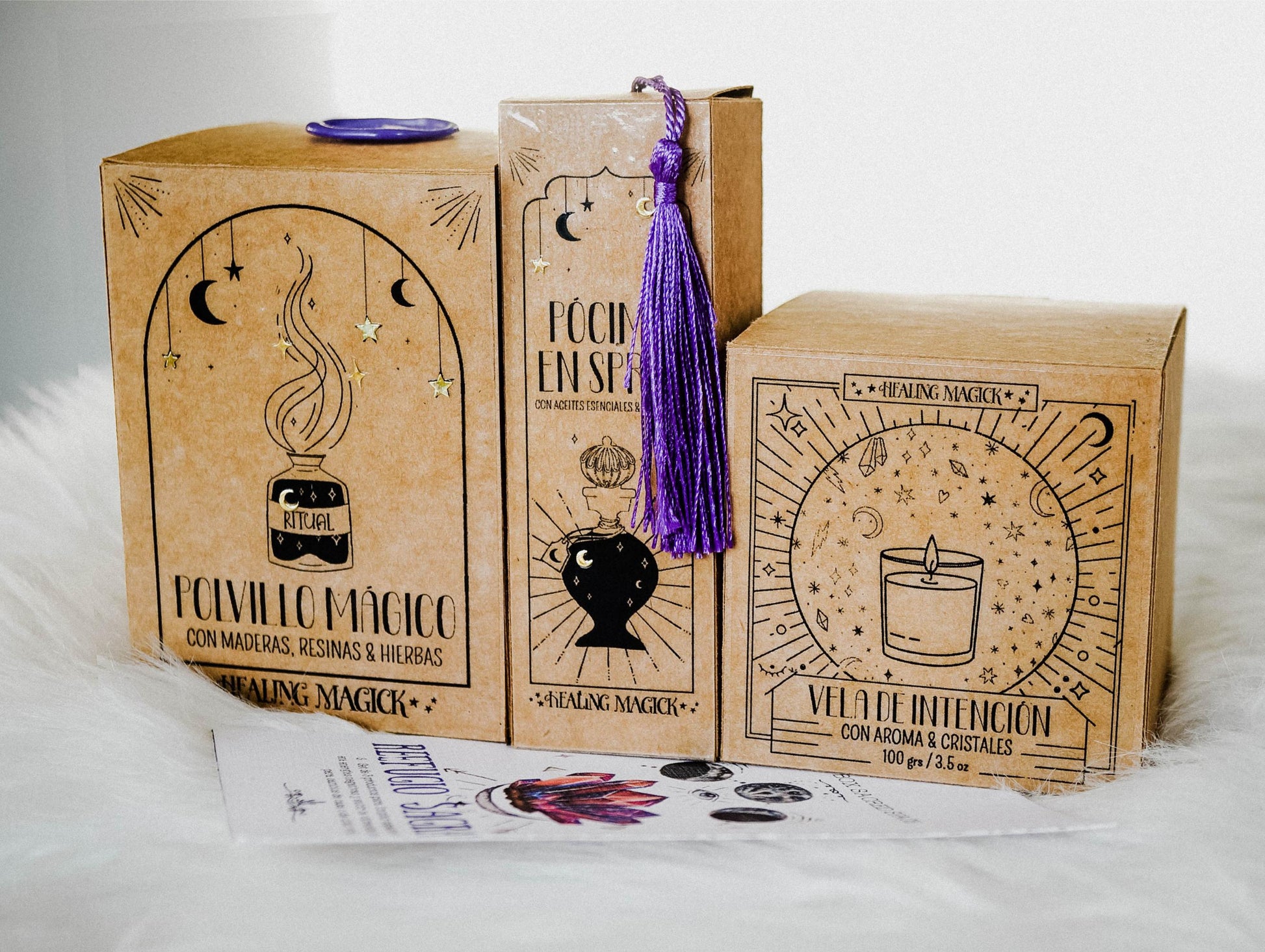 Un poderoso set de 3 productos, en una cajita de regalo cubierta de terciopelo violeta, para limpiar espacios de energías negativas, subir la vibración y despejar el flujo. Incluye folleto de colección e instrucciones para cada producto.